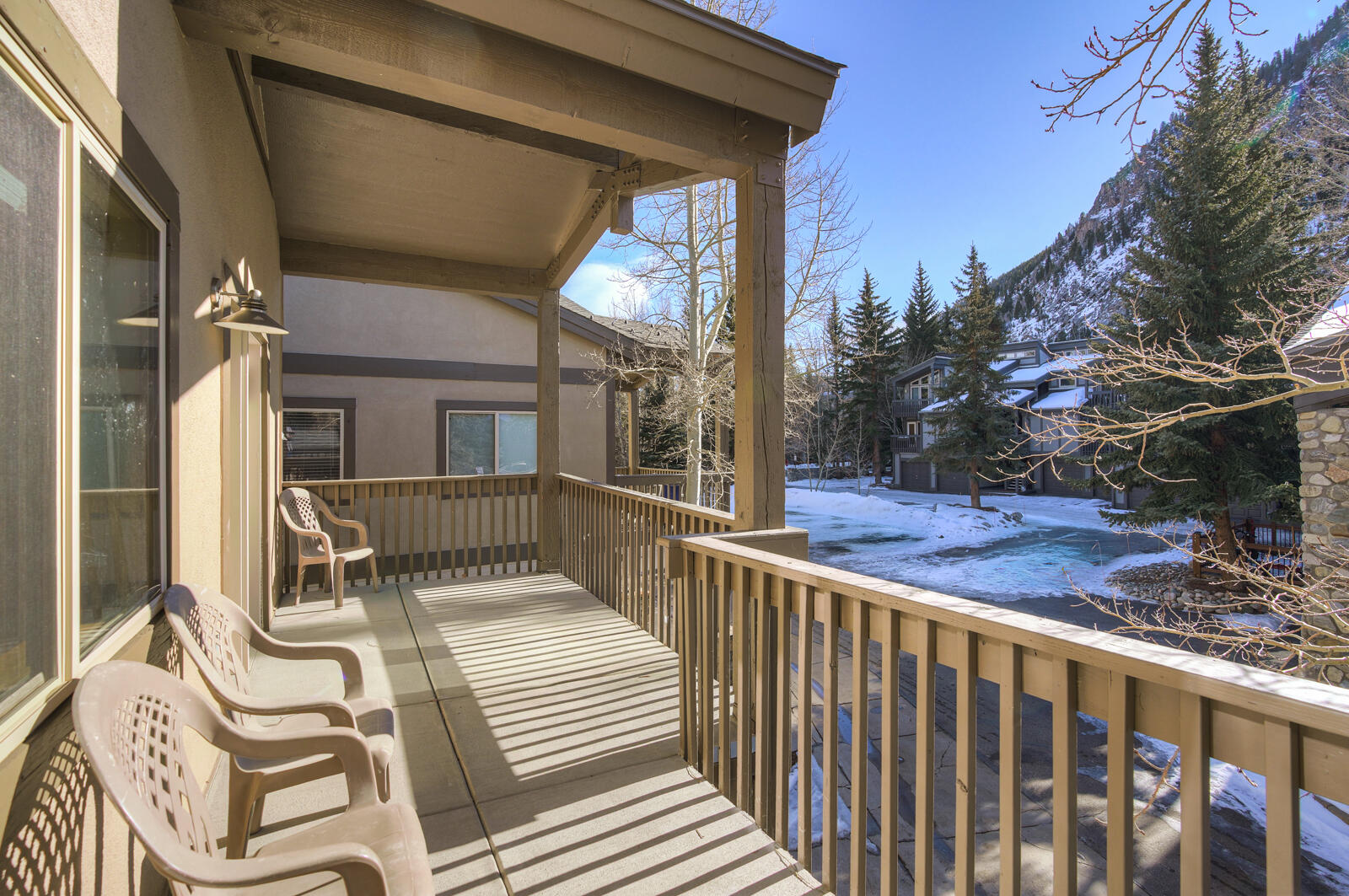 Cross Creek Condos – Unit 102A in Frisco, Colorado is the perfect home base for mountain adventures any time of year. This pet-friendly studio condo is located just off Main Street Frisco in a quiet residential neighborhood, offering a quick and convenient walk to local shops, restaurants, and the free shuttle to nearby ski resorts.