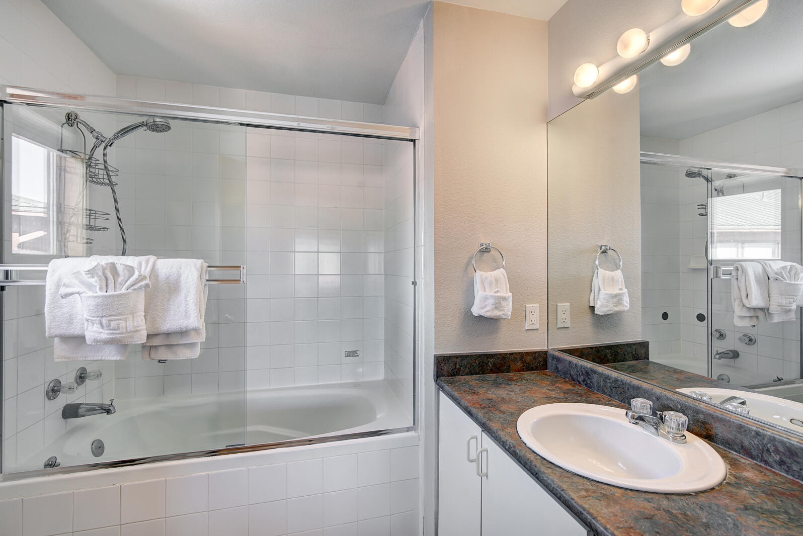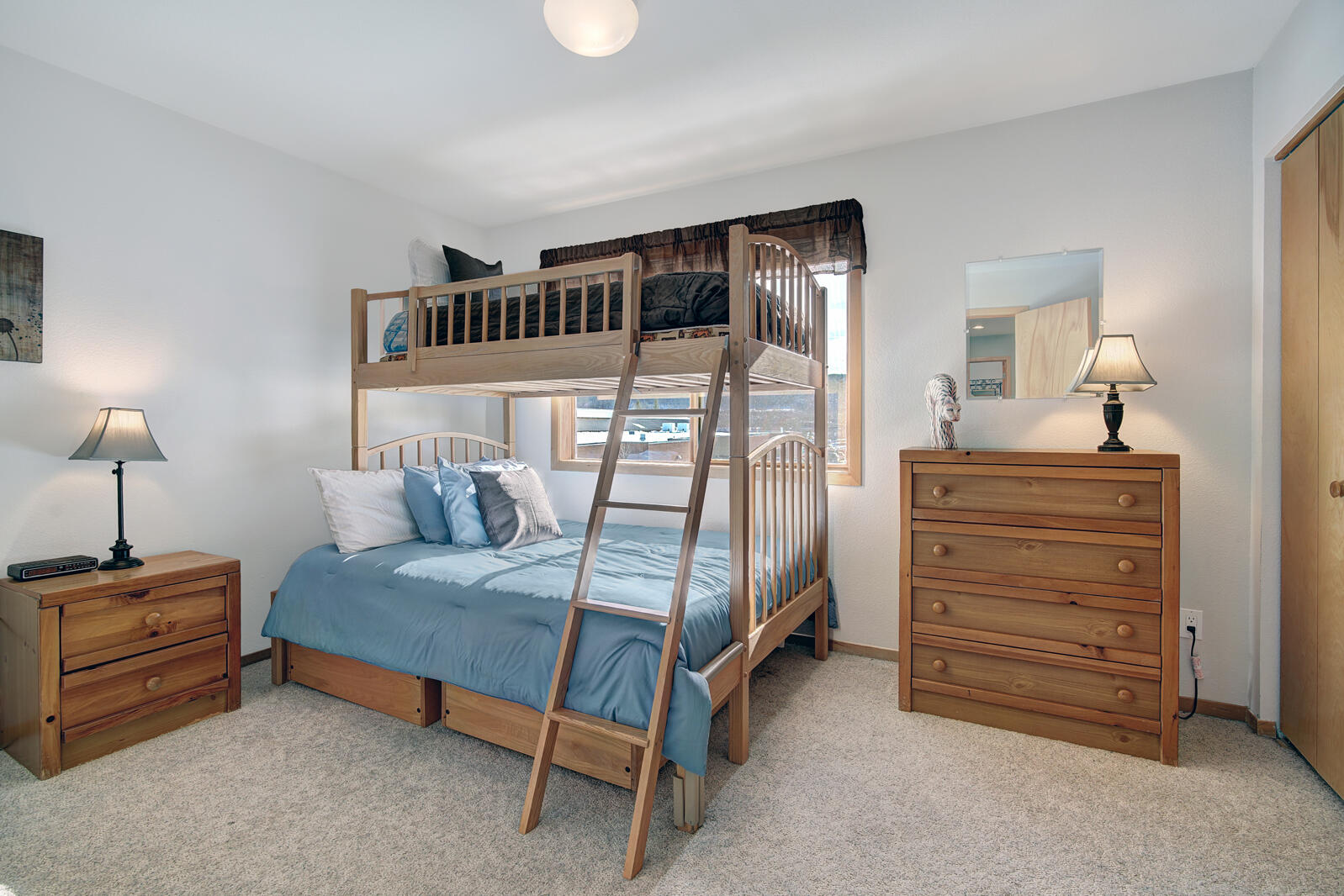 Unit 723A is a 2-bedroom, 2.5-bathroom townhome with a spacious three-level floor plan, giving family and friends plenty of room to spread out. Sleeping arrangements include a Queen bed in the primary bedroom, a Captain’s bunk in the second bedroom (Double on the bottom, Twin on the top), and a Double sofa sleeper in the living area.
