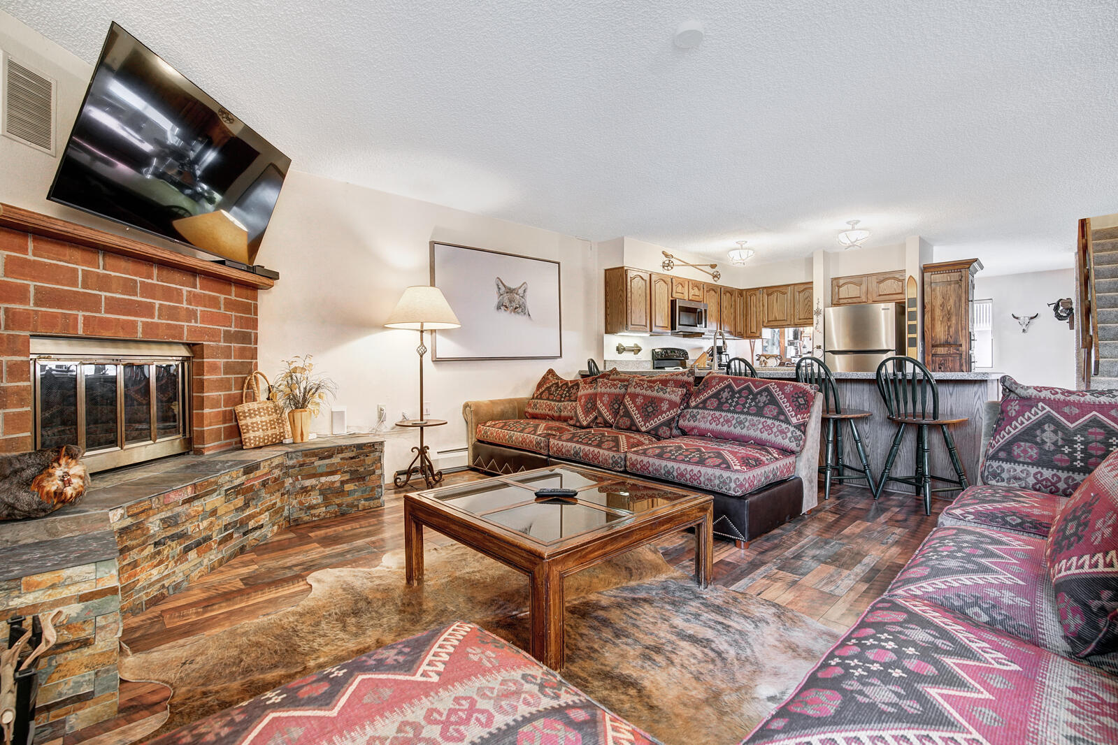Please note: the wood fireplace can be used for duraflame logs only. NO wood fires in the fireplace please.