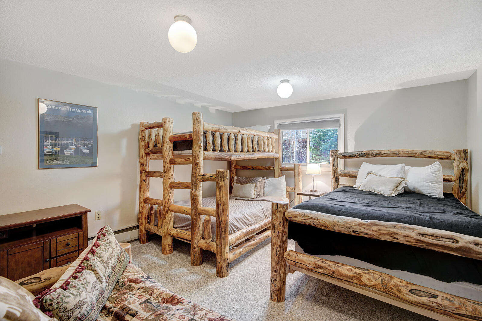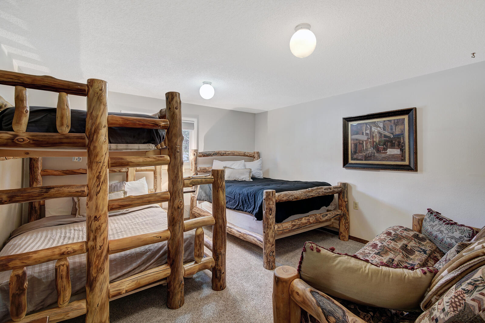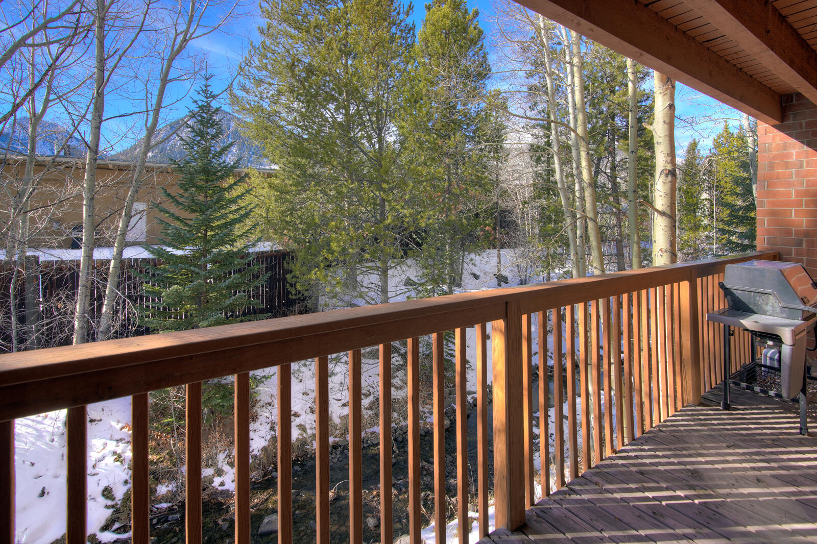 Lagoon is a great option for those looking to vacation in Summit County inexpensively. Built in 1982, Lagoon sits close to the shores of Lake Dillon in Frisco and includes clubhouse access complete with swimming pool and hot tub. Unit 762B is a well-maintained 3 bedroom plus den/3.5 bath townhome complete with full kitchen, private laundry facilities, wood fireplace, and Wifi. Bedding in the townhome goes King bed in the master and Queen bed in the second bedroom. The ground level has a third bedroom with a Double bed and Double sized futon and a den area with a couch. There is an additional Double sized sofa sleeper in the living area. Unit 762B also includes private garage parking for all of those cold winter nights.