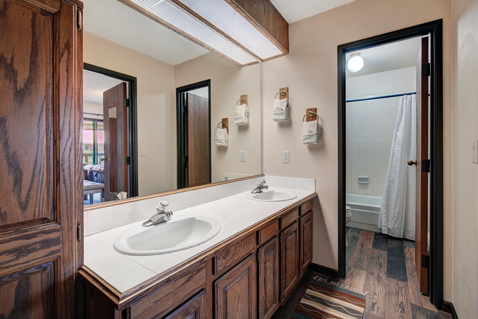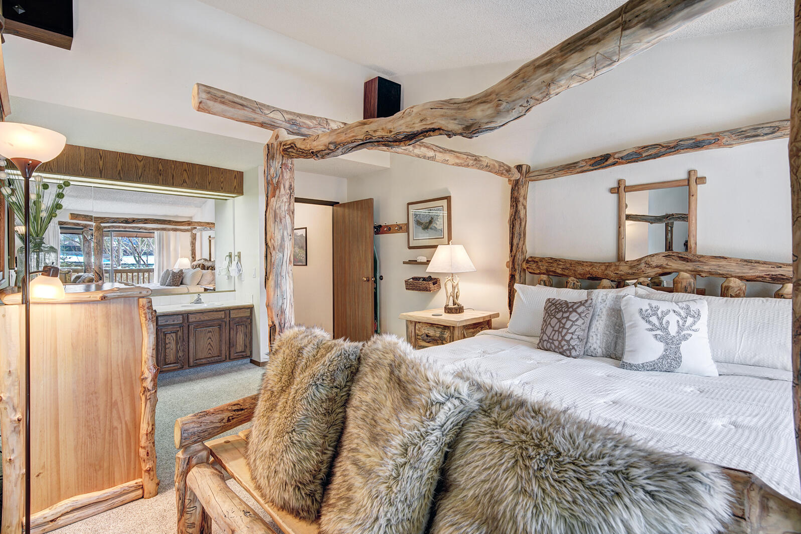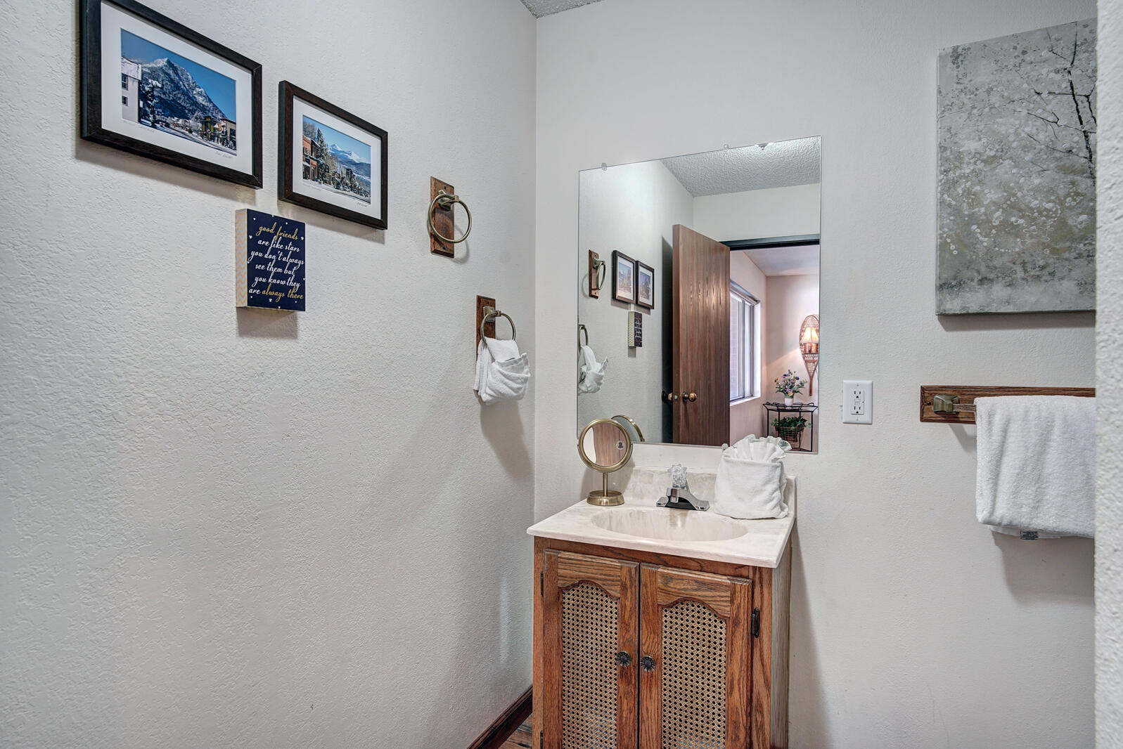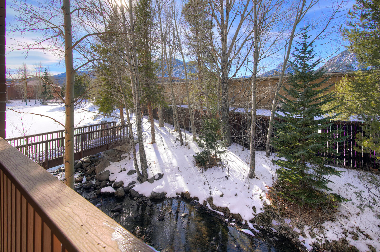 Lagoon is a great option for those looking to vacation in Summit County inexpensively. Built in 1982, Lagoon sits close to the shores of Lake Dillon in Frisco and includes clubhouse access complete with swimming pool and hot tub. Unit 762B is a well-maintained 3 bedroom plus den/3.5 bath townhome complete with full kitchen, private laundry facilities, wood fireplace, and Wifi. Bedding in the townhome goes King bed in the master and Queen bed in the second bedroom. The ground level has a third bedroom with a Double bed and Double sized futon and a den area with a couch. There is an additional Double sized sofa sleeper in the living area. Unit 762B also includes private garage parking for all of those cold winter nights.