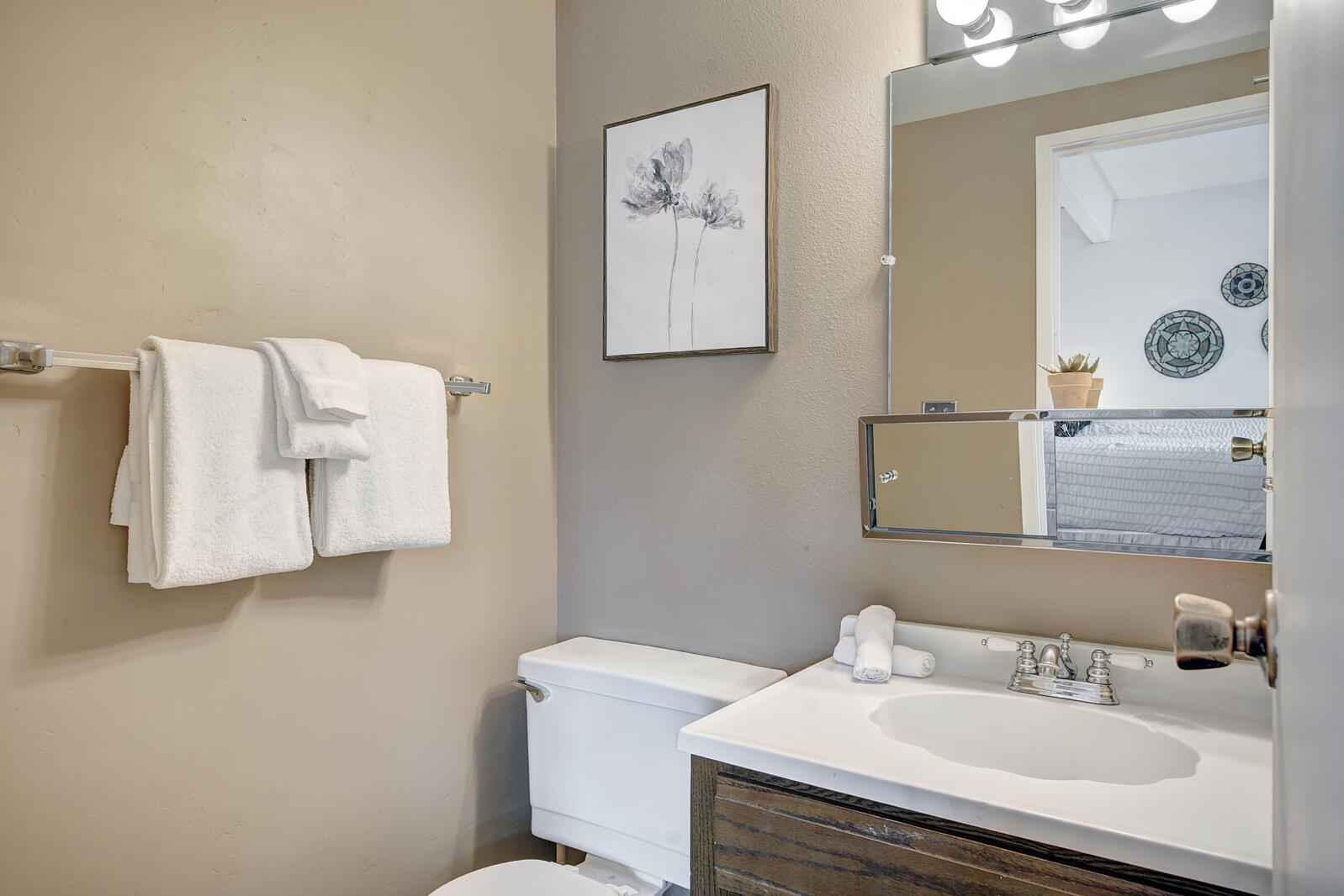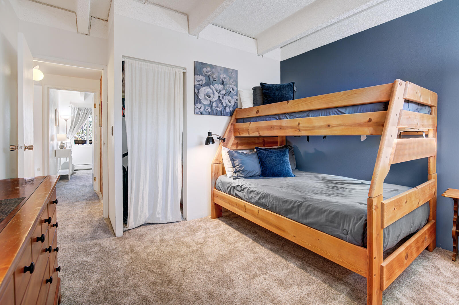 Ten Mile Creek Condominiums sits just off Main Street in Frisco at Second Avenue and Granite Street. It is nicely furnished for those looking for a good place to relax after a long day of skiing or boarding the local resorts. Unit 304 is a 2 bedroom, 2 (1.5) bathroom condo on the third floor. There is a Queen bed in the master bedroom, and a Twin over Full Bed in the second bedroom. The condo features a fully equipped kitchen, common laundry facilities, WiFi. Ten Mile Creek has a very nice clubhouse as well with indoor pool, sauna and hot tub. STR License #STR-010686